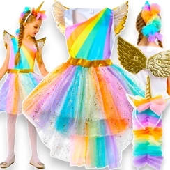 STRÓJ JEDNOROŻEC KOSTIUM JEDNOROŻCA DLA DZIEWCZYNKA SUKIENKA OPASKA NA BAL