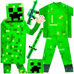 MINECRAFT Strój dla chłopca CREEPER / kostium na bal rozmiar M 120-130 cm + miecz