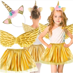 MAGICZNY STRÓJ JEDNOROŻEC DLA DZIEWCZNKI NA BAL SKRZYDŁA OPASKA SPÓDNICZKA