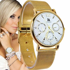 ELEGANCKI ZŁOTY ZEGAREK DAMSKI KURREN CYRKONIE KWARCOWY NA PREZENT MODNY