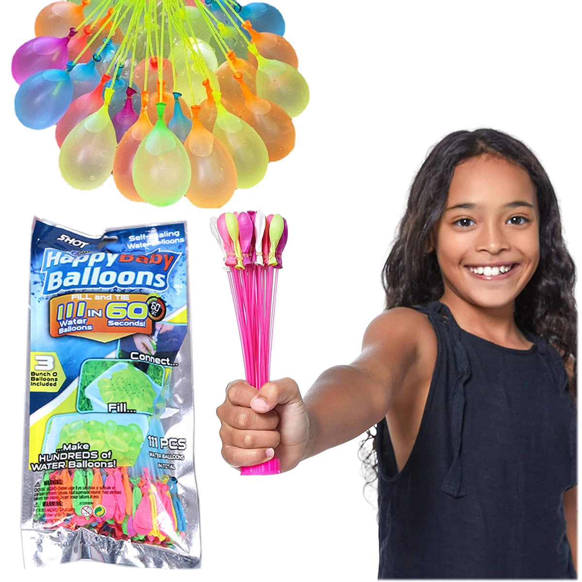 HAPPY BALLOONS to świetna zabawa dla całej rodziny! Idealna w upalne dni, w ogrodzie, na plaży, w parku lub basenie! Napełnij 111 wodnych balonów „Happy Ballons” w czasie krótszym niż 60 sekund i rozpocznij wodną bitwę! Pożegnaj się ze stresem i nużącym wiązaniem wszystkich balonów. Każdy balon jest przymocowany do słomki za pomocą gumki, która po napełnieniu balonów wodą zaciska się automatycznie na balonie.