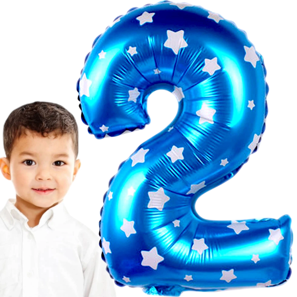 BALON FOLIOWY CYFRA 2 NIEBIESKI W GWIAZDKI NA URODZINY DLA DZIECI 100cm