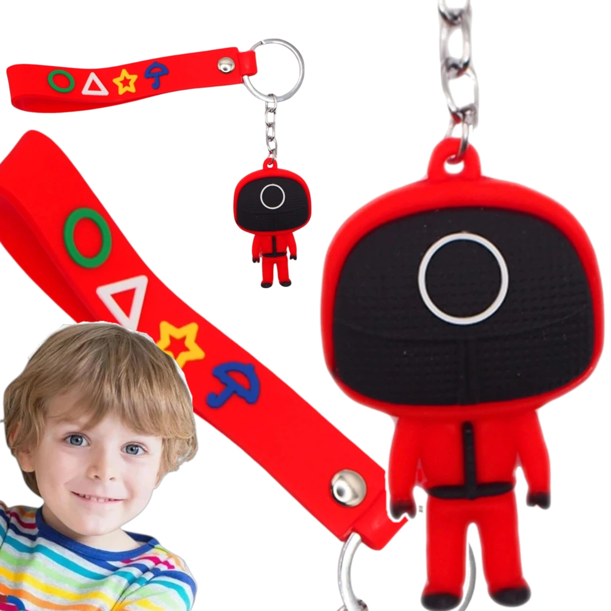 BRELOCZEK DO KLUCZY Z FILMU SQUID GAME STRAŻNIK KOŁO WISIOREK GUMOWY