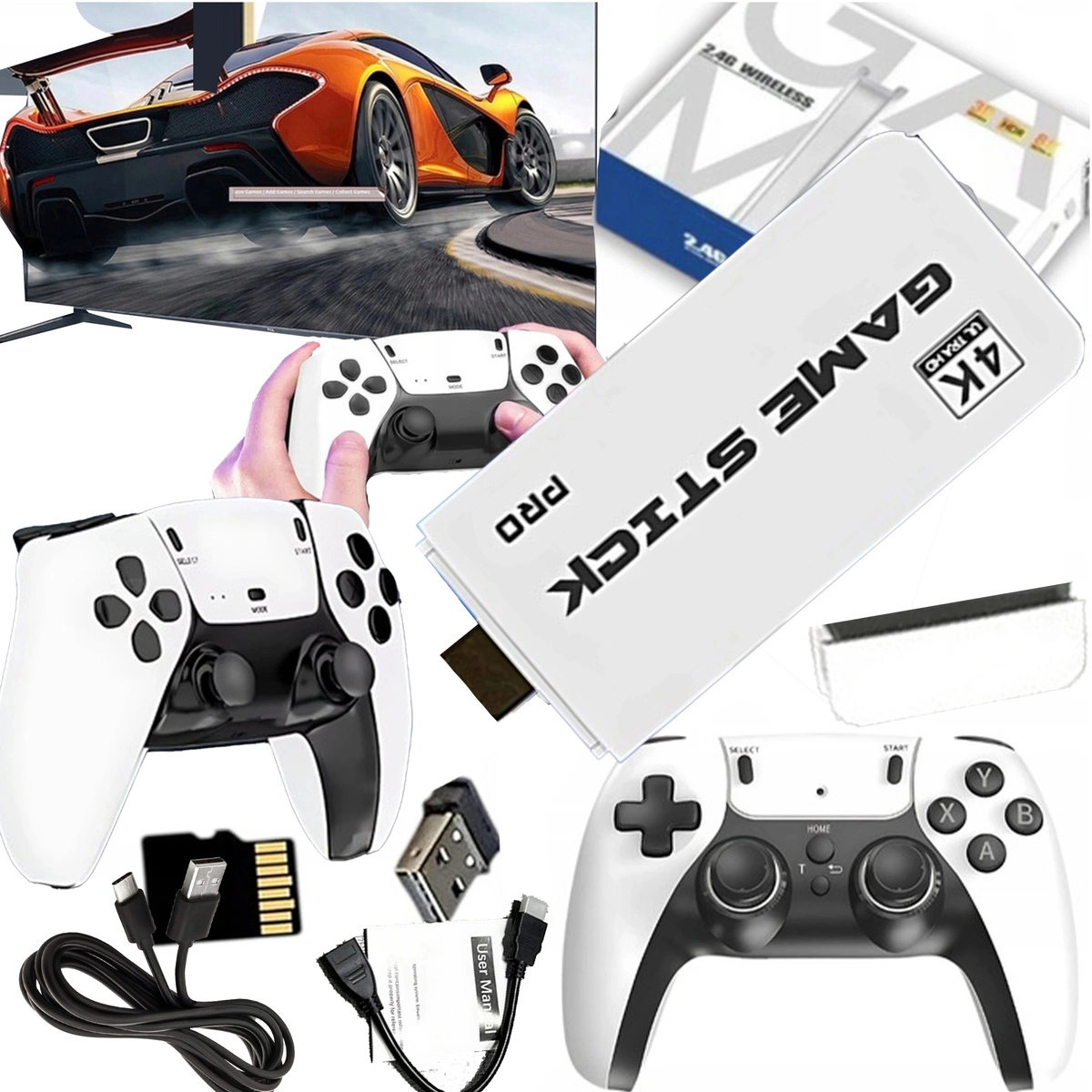 KONSOLA DO GIER RETRO GAME STICK PRO NOWOŚĆ 2025R HDMI 2 PADY MENU PL 64 GB