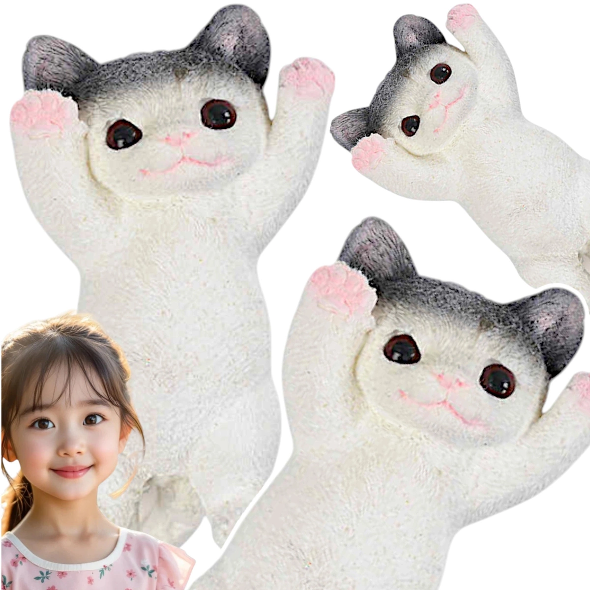 - Uroczy wygląd – biały kotek z różowymi uszami i ciemnymi akcentami wzbudza sympatię i relaksuje samym wyglądem.