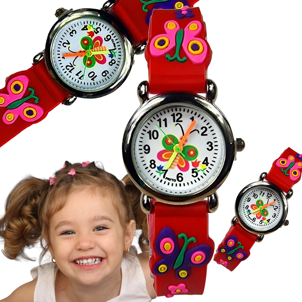 KLASYCZNY ZEGAREK DZIECIĘCY MOTYLI CZERWONY EDUKACYJNY NA PREZENT