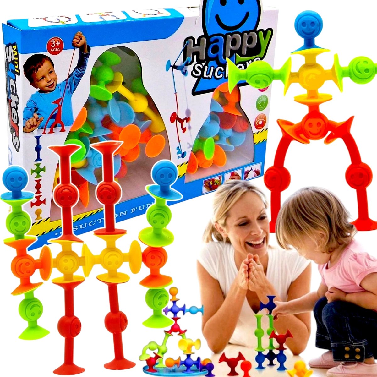 - Funkcje: Giętkie, elastyczne klocki z przyssawkami, możliwość łączenia w dowolny sposób