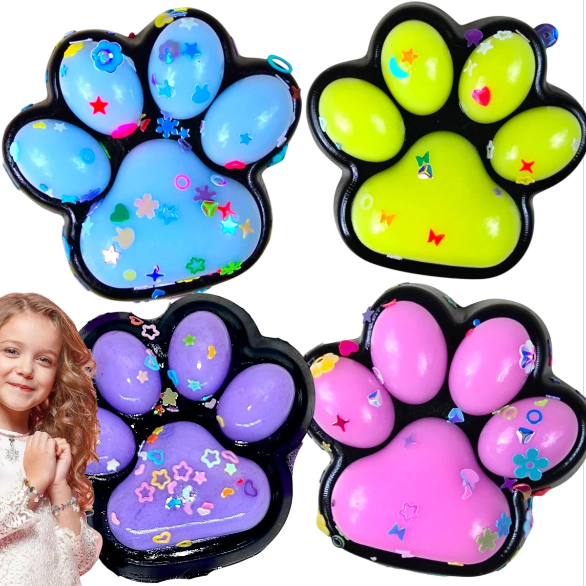 Gniotek Sensoryczny "Kocia Łapka" aż cztery sztuki – Rozciągliwy Gniotek z Posypkami