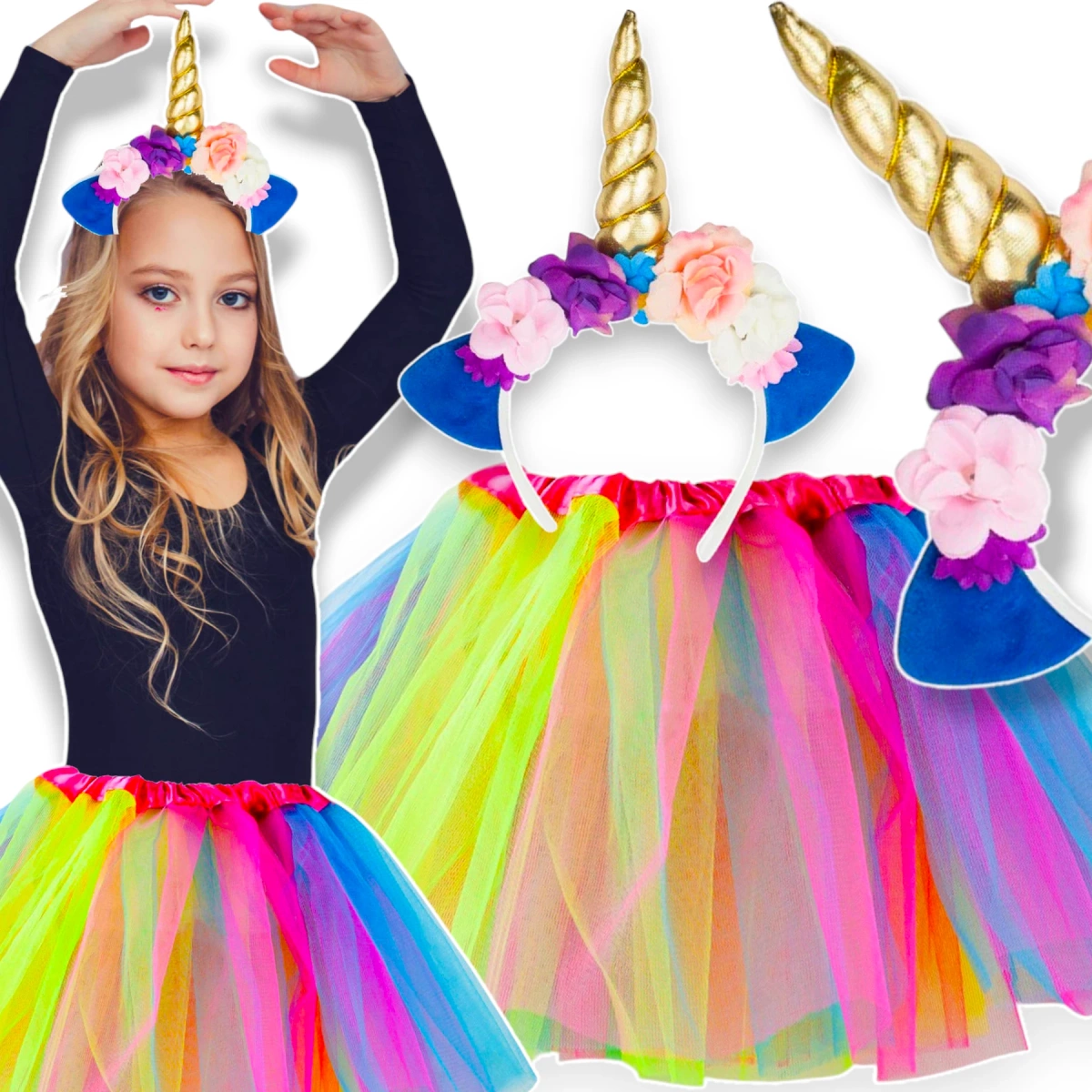 KOSTIUM JEDNOROŻCA DLA DZIEWCZYNKI STRÓJ JEDNOROŻEC OPASKA SPÓDNICZKA 2w1