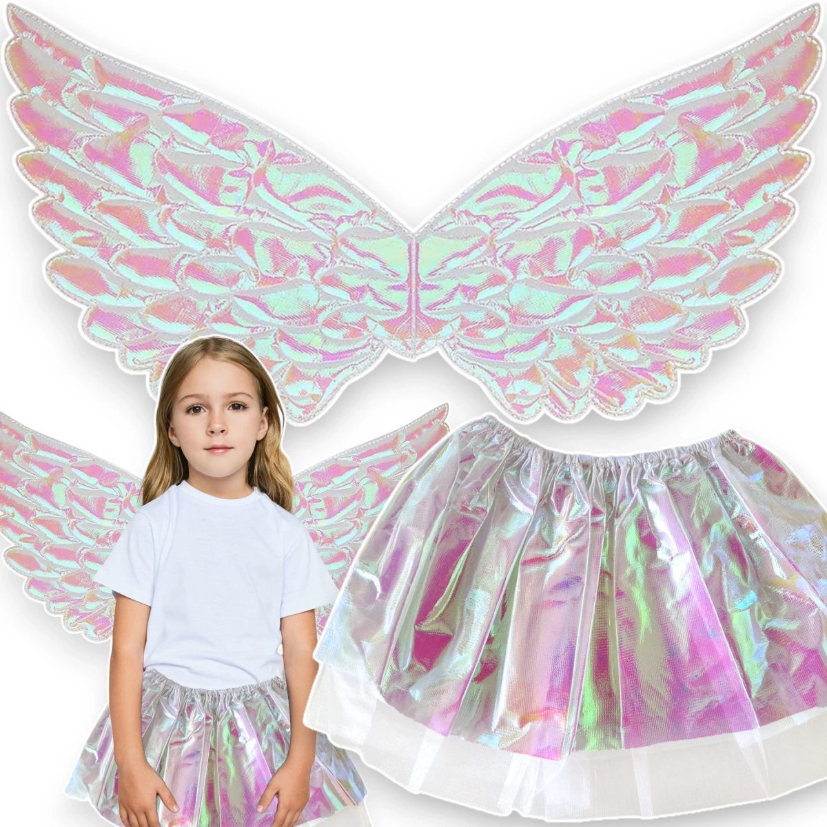 STRÓJ DLA DZIEWCZYNKI ANIOŁEK DUŻE SKRZYDŁA SKRZYDEŁKA SPÓDNICZKA NA BAL