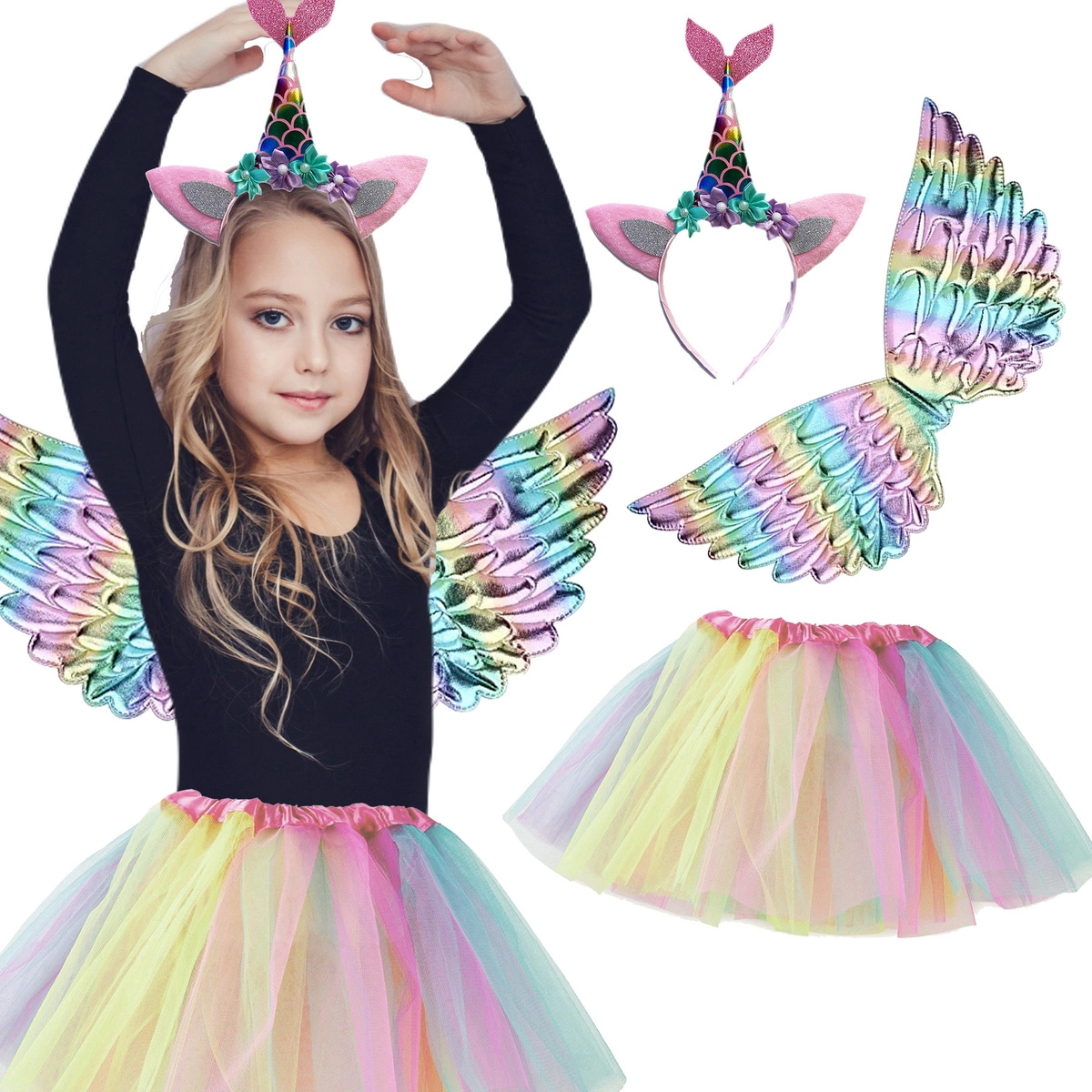 STRÓJ DLA DZIEWCZYNKI JEDNOROŻEC PEGAZ TĘCZOWY SPÓDNICZKA OPASKA PRZEBRANIE