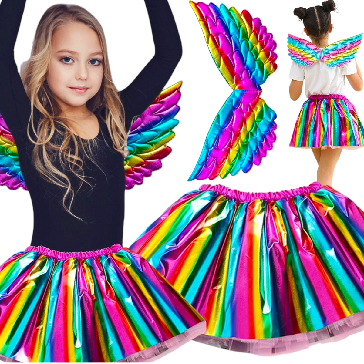STRÓJ DLA DZIEWCZYNKI JEDNOROŻEC PEGAZ TĘCZOWY SPÓDNICZKA OPASKA PRZEBRANIE