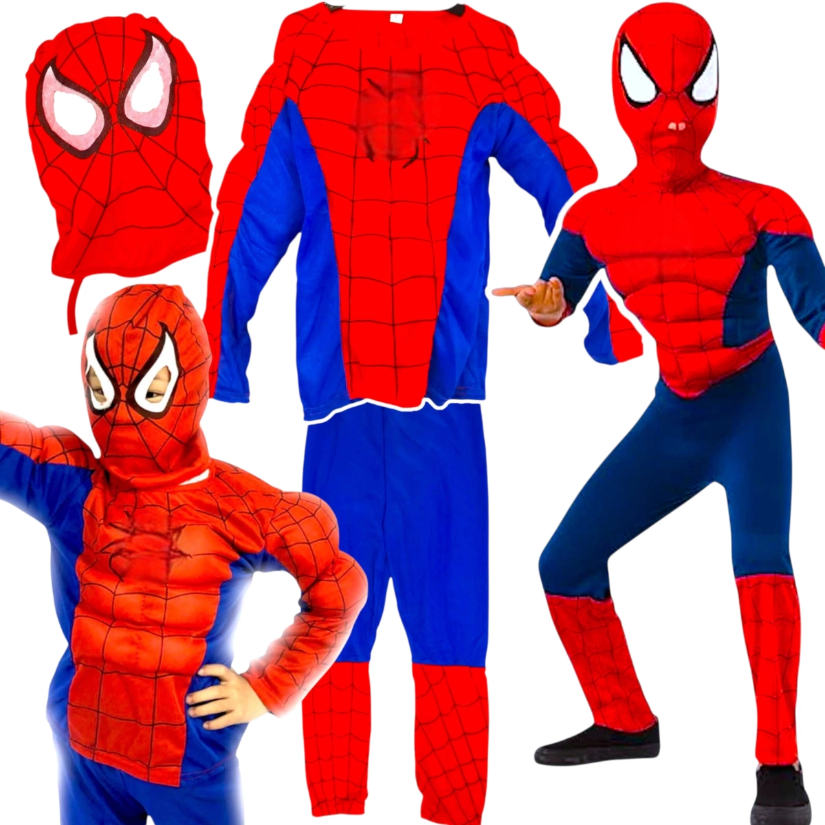 STRÓJ SPIDERMAN PRZEBRANIE DLA CHŁOPCA BAL 3w1 GRUBY MIĘŚNIE MASKA KOSTIUM