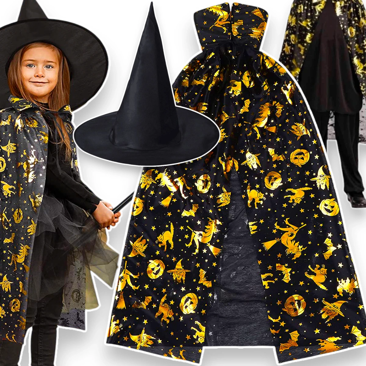 Zestaw Strój na Halloween Wiedźma Peleryna + Kapelusz