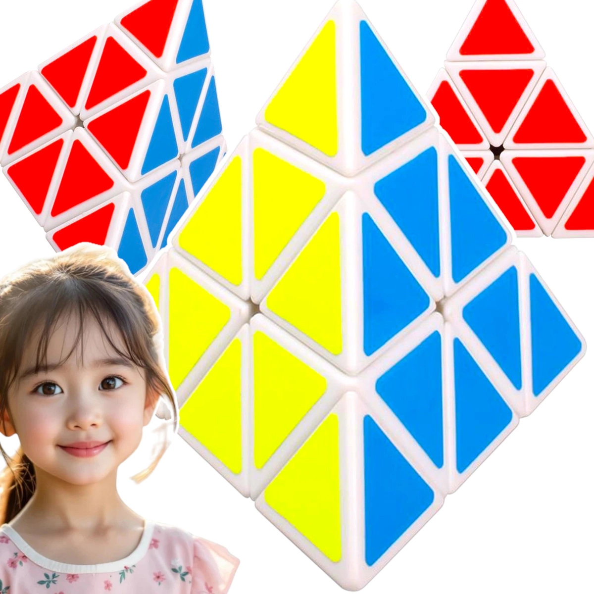 Trójkątna kostka to popularna zabawka logiczna. Zabawa kostką polega na takim ułożeniu trójkątów, aby na każdej ścianie wszystkie posiadały jeden kolor. Kluczowe aspekty kostki to: kombinacja kolorów, zachwycający kształt, zabawa kolorami, po prostu genialna, rozwijająca myślenie oryginalna, wysokiej jakości łamigłówka.