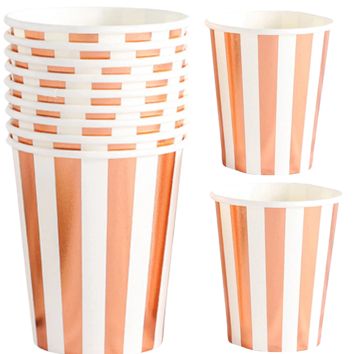 KUBECZKI JEDNORAZOWE EKOLOGICZNE KUBKI ROSE GOLD RÓŻOWE W PASKI ZESTAW 6szt