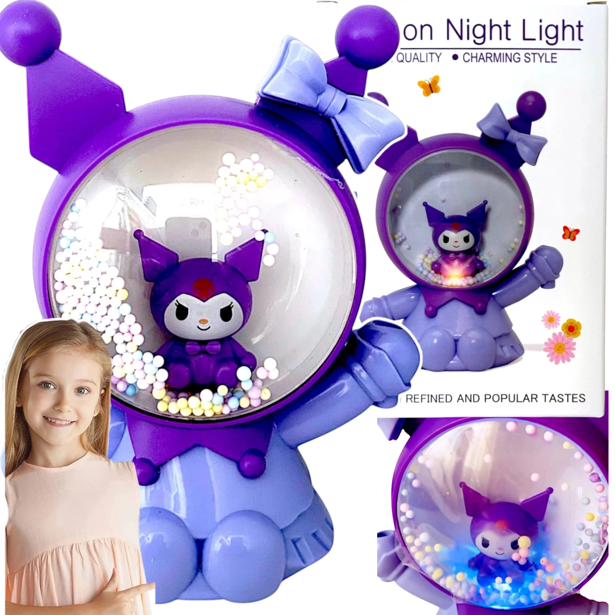 Cartoon Night Light LED – Fioletowa Lampka Nocna z Bohaterem w Stylu Kuromi
