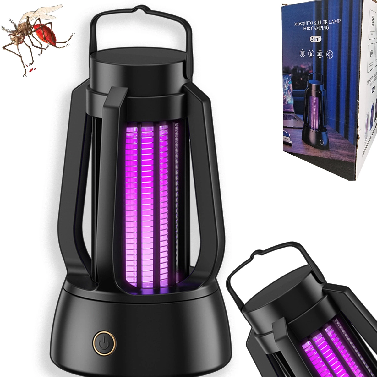 Lampa owadobójcza na komary, muchy, meszki, osy i inne owady - Przenośna lampa owadobójcza może również działać jako lampka.