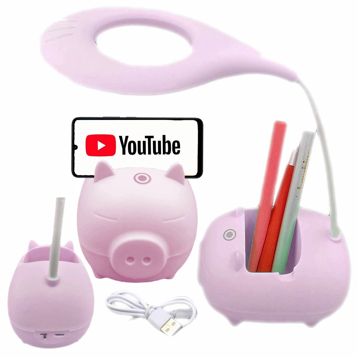 LAMPKA BIURKOWA ŚWINKA Z POJEMNIKIEM LED PODSTAWKA NA TELEFONU DLA DZIECI