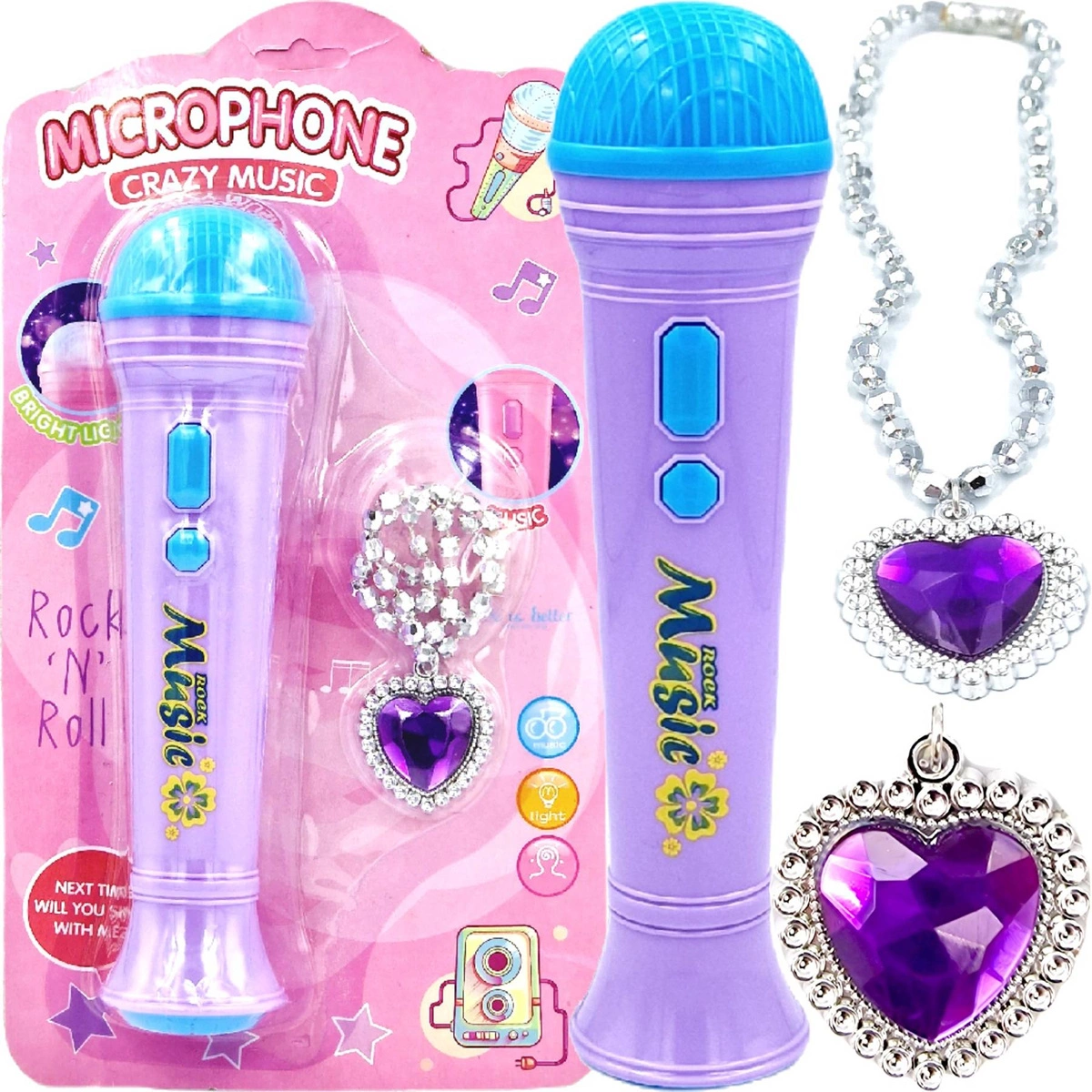 MEGA ZESTAW 2w1 MIKROFON DO ZABAWY + NASZYJNIK ŚPIEWA MELODIE ŚWIECI LED