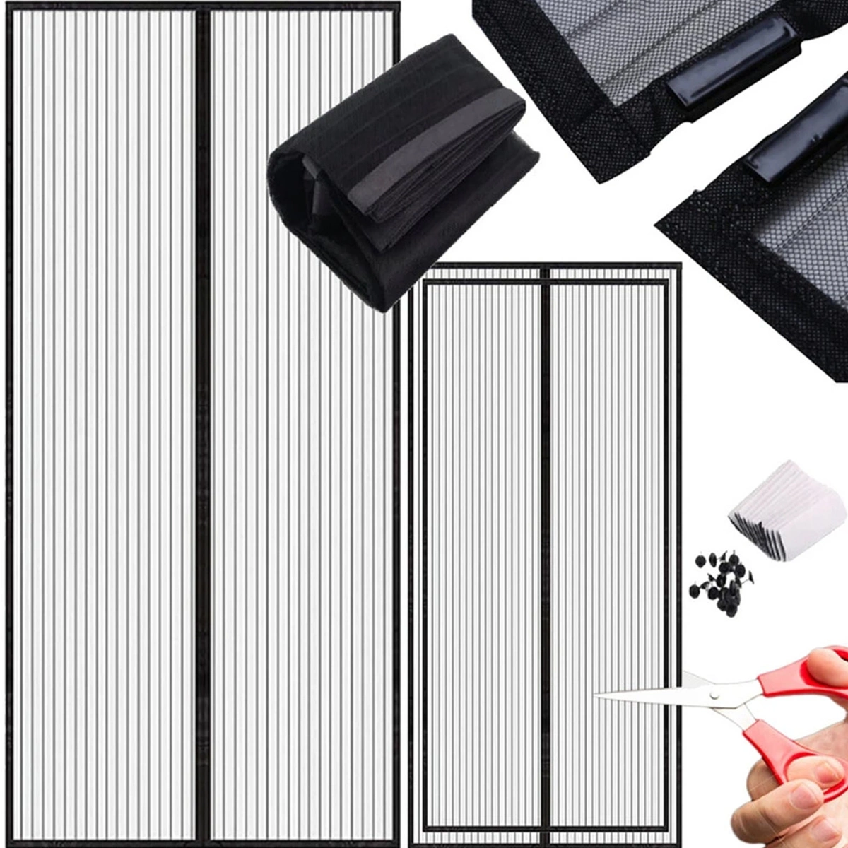 Moskitierę możemy dostosować do różnych wymiarów drzwi za pomocą specjalnych taśm, które w łatwy sposób docina się do odpowiedniej długości za pomocą nożyczek.