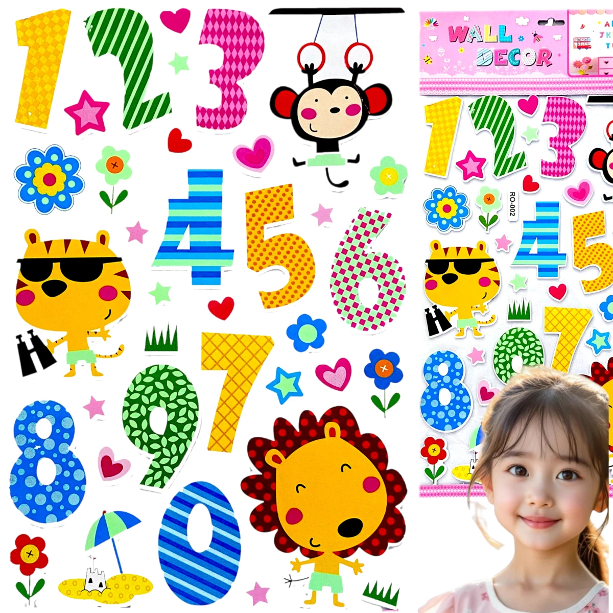 NAKLEJKI 3D NA ŚCIANĘ DLA DZIECI CYFERKI ZWIERZĘTA OZDOBA POKOJU NA ŚCIANĘ