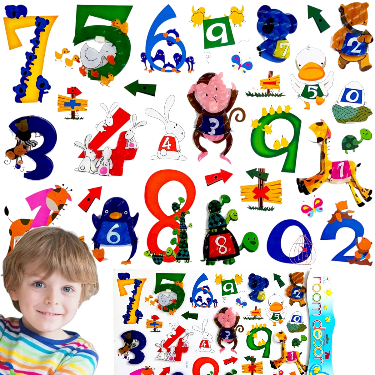 NAKLEJKI 3D NA ŚCIANĘ DLA DZIECI CYFERKI ZWIERZĘTA OZDOBA POKOJU NA ŚCIANĘ
