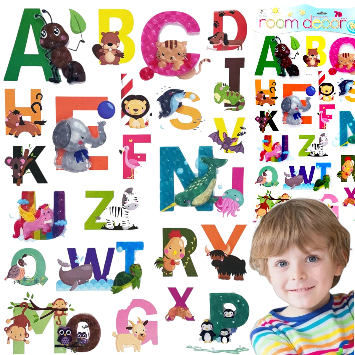 NAKLEJKI ŚCIENNE 3D DLA DZIECI ALFABET ZWIERZĘTA OZDOBA POKOJU NA ŚCIANĘ