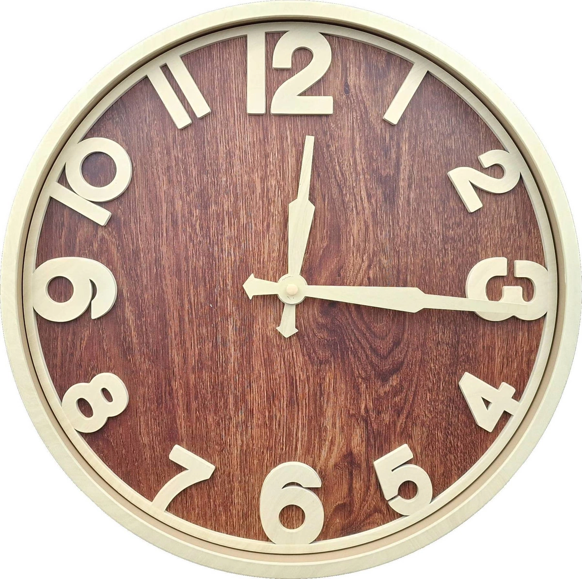 - ✅ Naturalny Wygląd: Tarcza zegara z wykończeniem imitującym drewno nadaje każdemu pomieszczeniu ciepły i naturalny charakter.