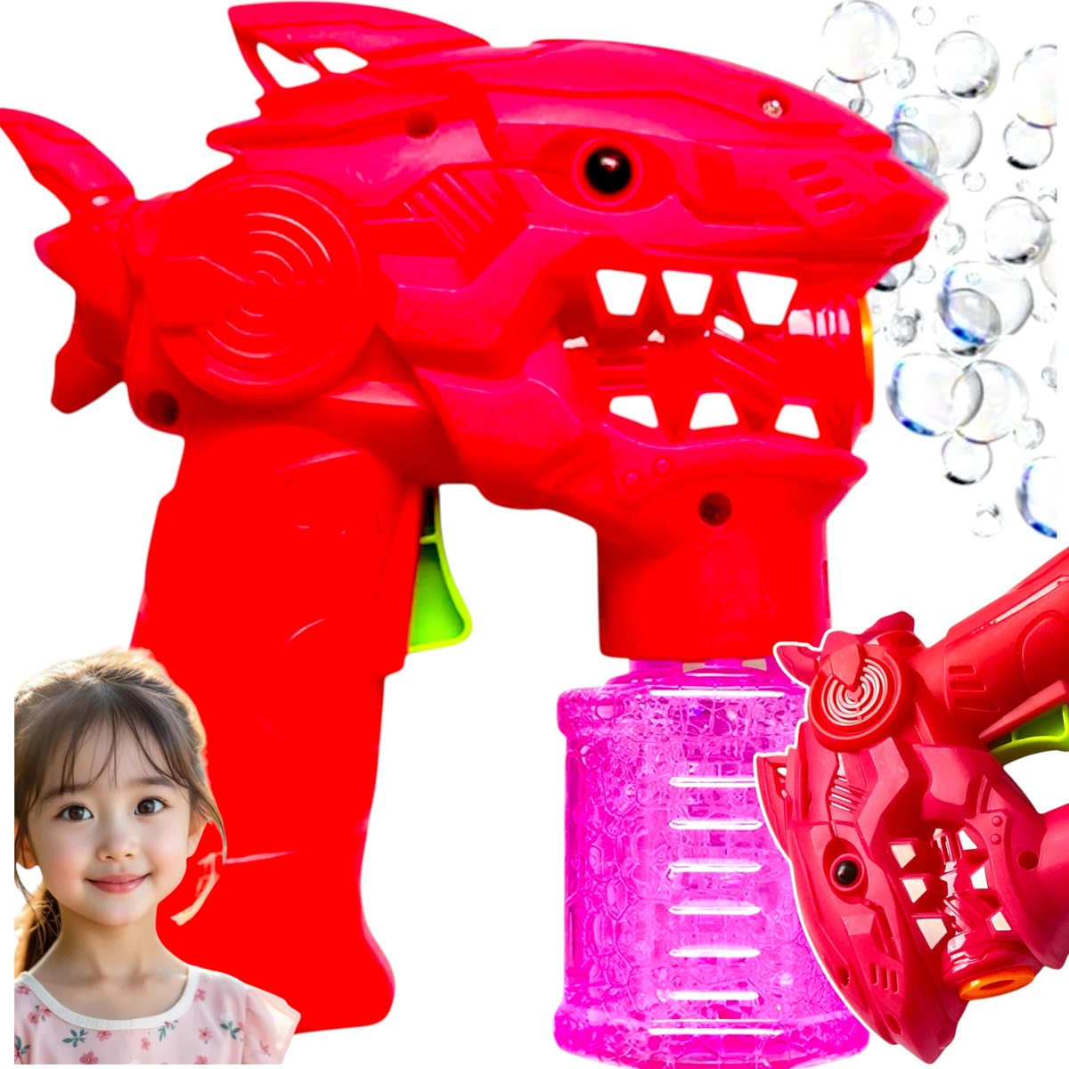 Oto automatyczny pistolet do baniek mydlanych w kształcie REKINA – dynamiczna, efektowna i bezpieczna atrakcja, która podbije każde dziecięce serce! Teraz również z efektami dźwiękowymi – wesołą muzyką podczas działania!