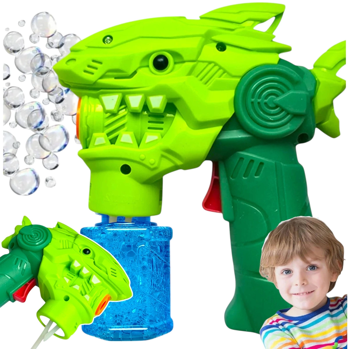 Oto automatyczny pistolet do baniek mydlanych w kształcie REKINA – dynamiczna, efektowna i bezpieczna atrakcja, która podbije każde dziecięce serce! Teraz również z efektami dźwiękowymi – wesołą muzyką podczas działania!