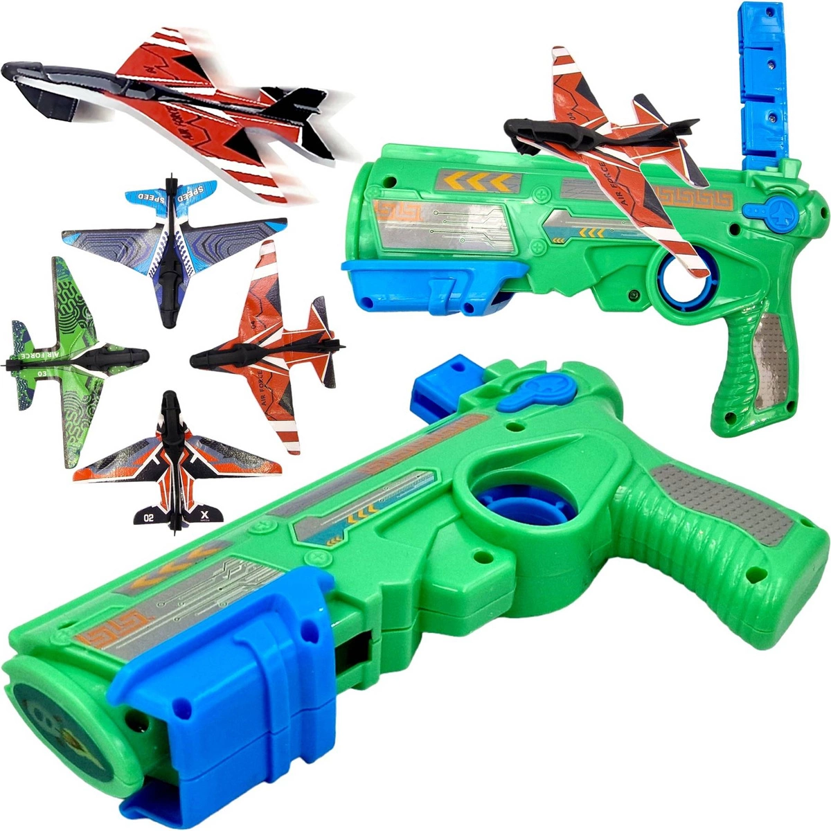 PISTOLET WYRZUTNIA SAMOLOTÓW DUŻY ZASIĘG 4 SAMOLOTY ZESTAW RZUTKA SZYBOWIEC