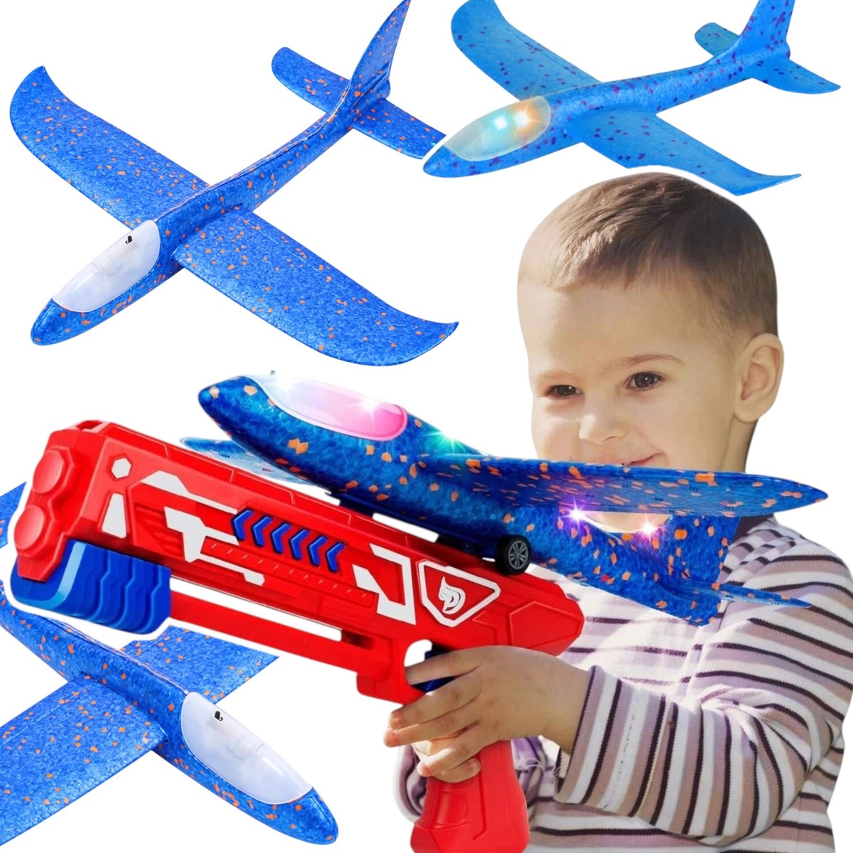PISTOLET WYRZUTNIA SAMOLOTÓW ZE ŚWIATŁEM RZUTKA SAMOLOT STYROPIANOWY LED