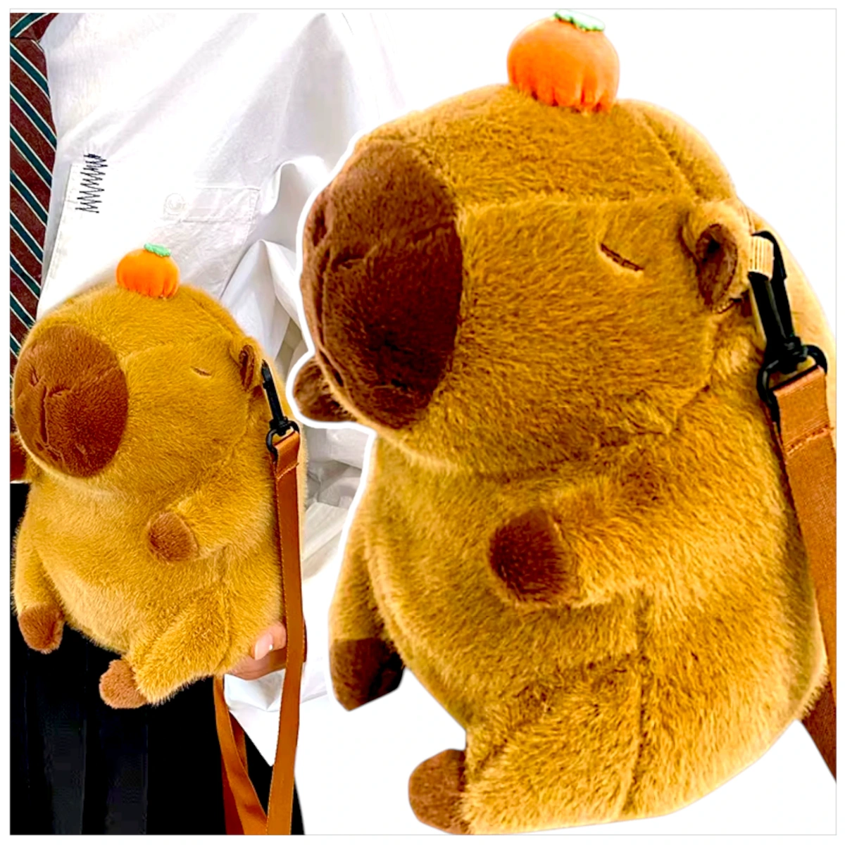 Słodki, mięciutki i absolutnie uroczy! Oto kapibara w wersji plecaka, która skradnie Twoje serce od pierwszego spojrzenia! Z charakterystycznym brązowym pyszczkiem i mini dynią na głowie, ta pluszowa kapibara to idealne połączenie funkcjonalności i zabawy.