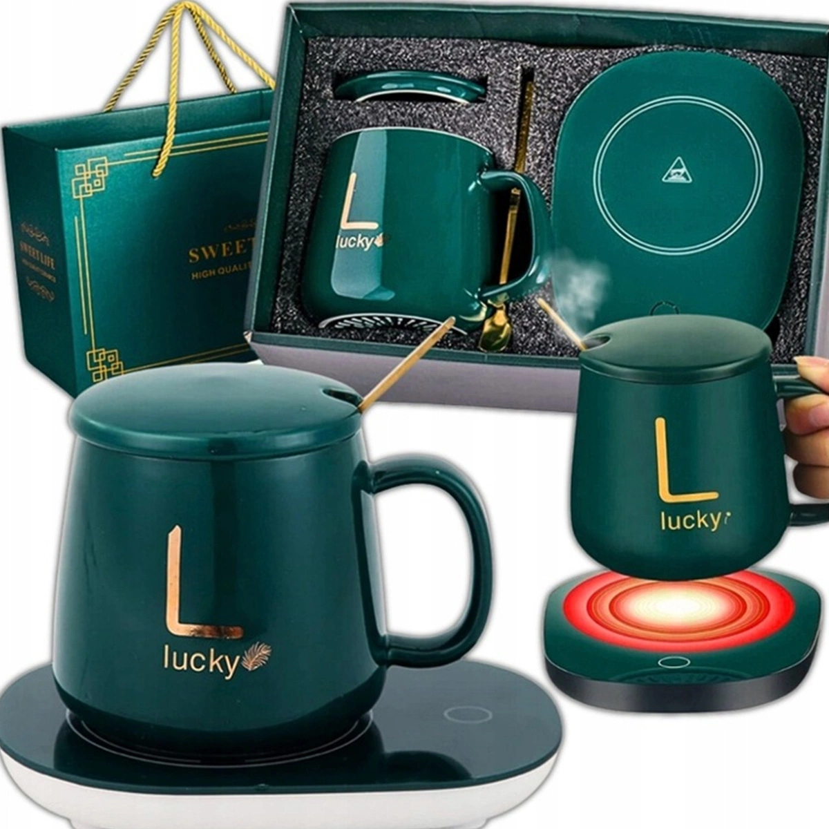 PODGRZEWACZ DO KUBKA KAWY HERBATY ZESTAW 5w1 Kubek z Podgrzewaczem