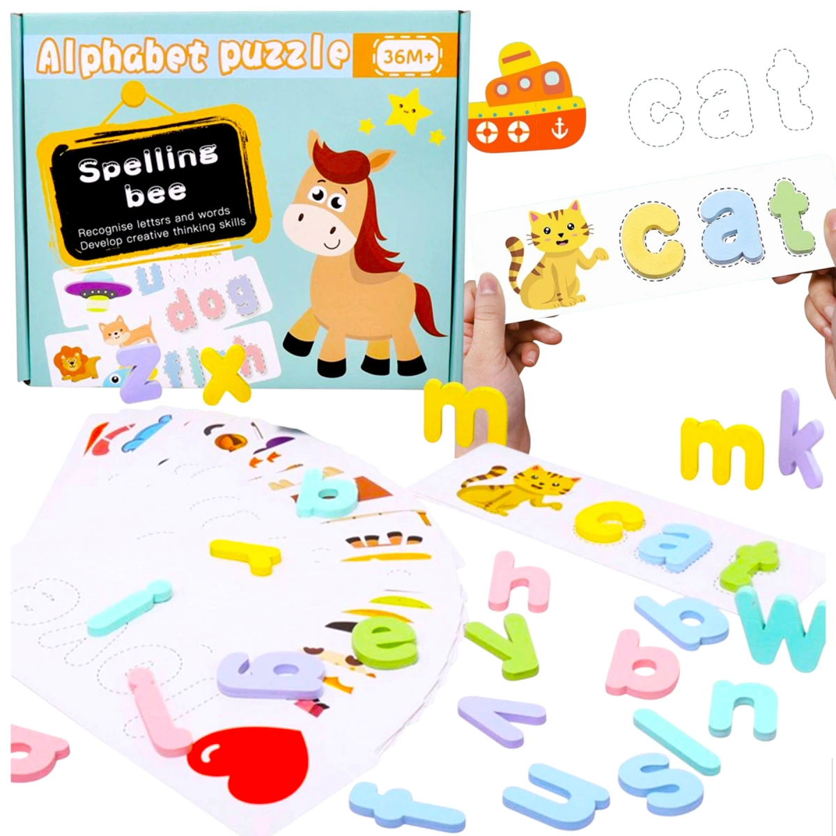 Edukacyjny zestaw w formie puzzli to idealna zabawka dla każdego maluszka. Puzzle składają się z drewnianych liter oraz szablonów, na których trzeba ułożyć literki zgodnie ze wzorem.