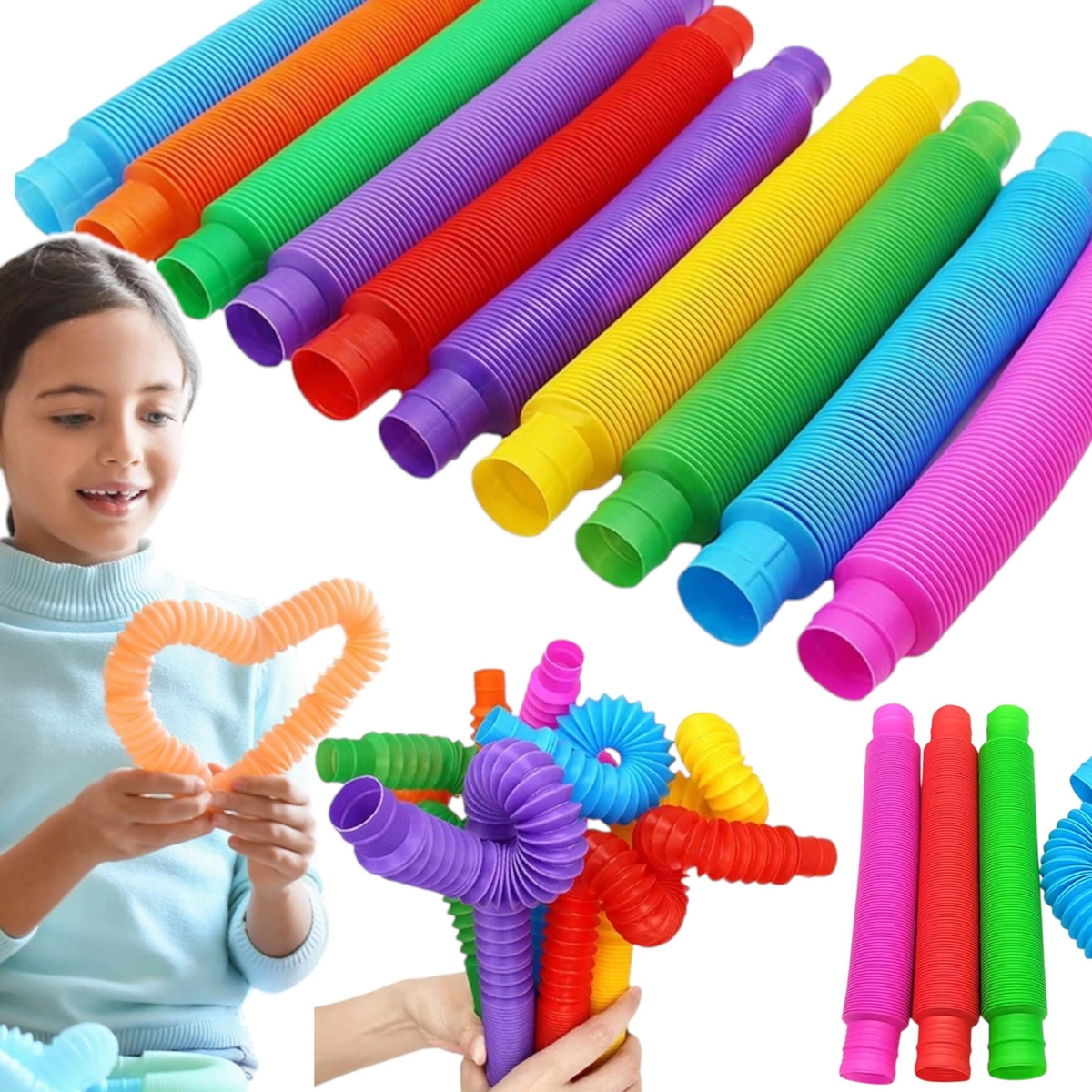 ✅ Wydawanie delikatnych dźwięków podczas rozciągania angażuje zmysł słuchu, co czyni rurki świetnym narzędziem terapeutycznym dla osób z potrzebami sensorycznymi.
