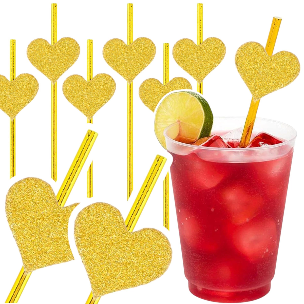 SŁOMKI PAPIEROWE SERDUSZKA 6SZT ZŁOTE SERCA IDEALNE NA ŚLUB EKOLOGICZNE