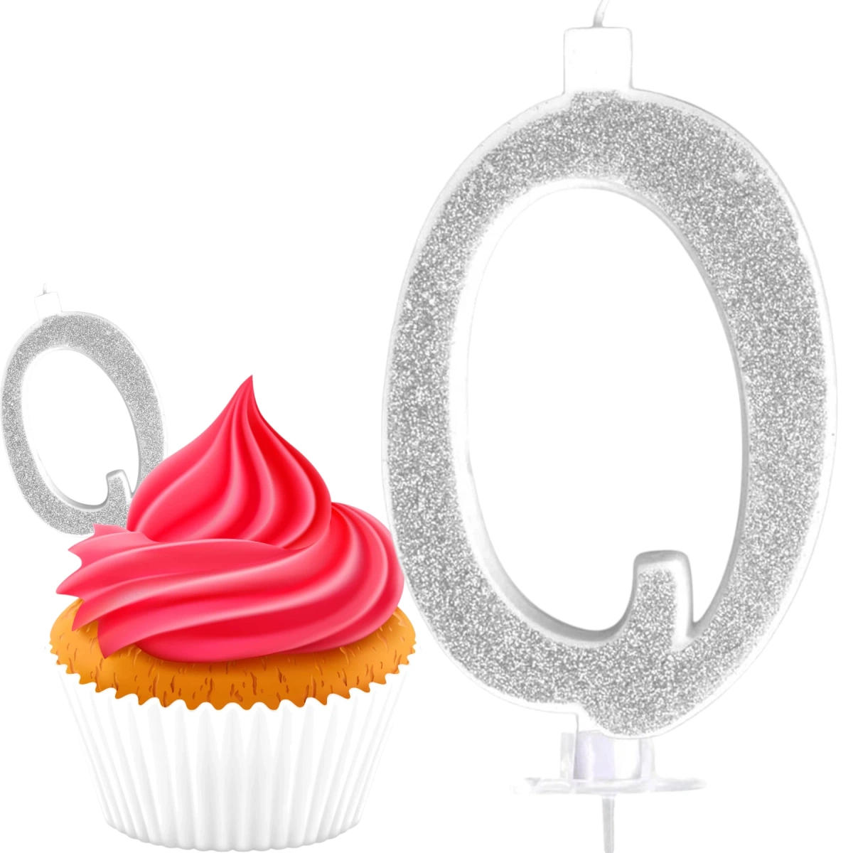 ŚWIECZKA URODZINOWA NA TORT CYFRA 0 ZERO SREBRNA Z BROKATEM NA URODZINY