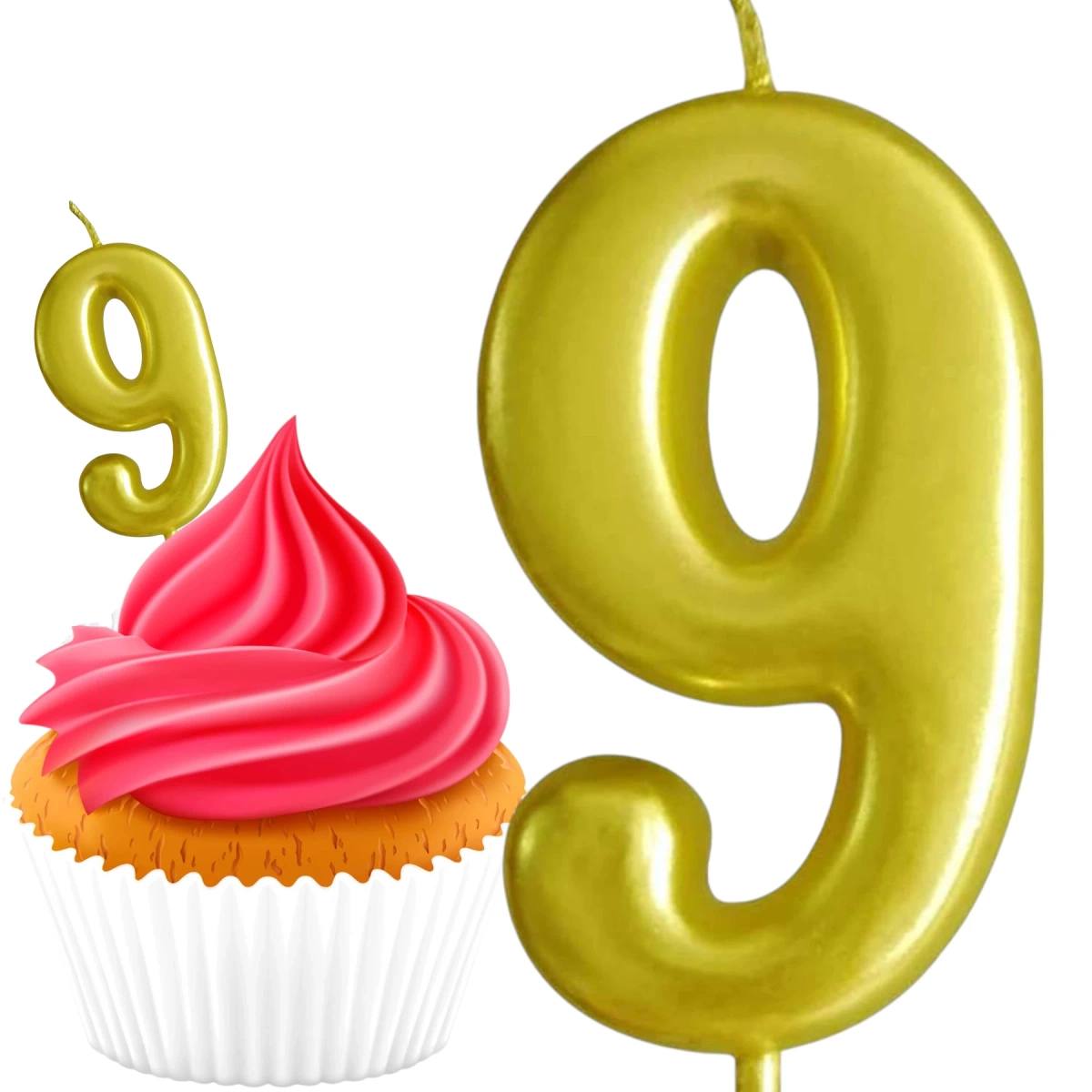 ŚWIECZKA URODZINOWA NA TORT CYFRA 9 ZŁOTA NA URODZINY DEKORACJA TORTU