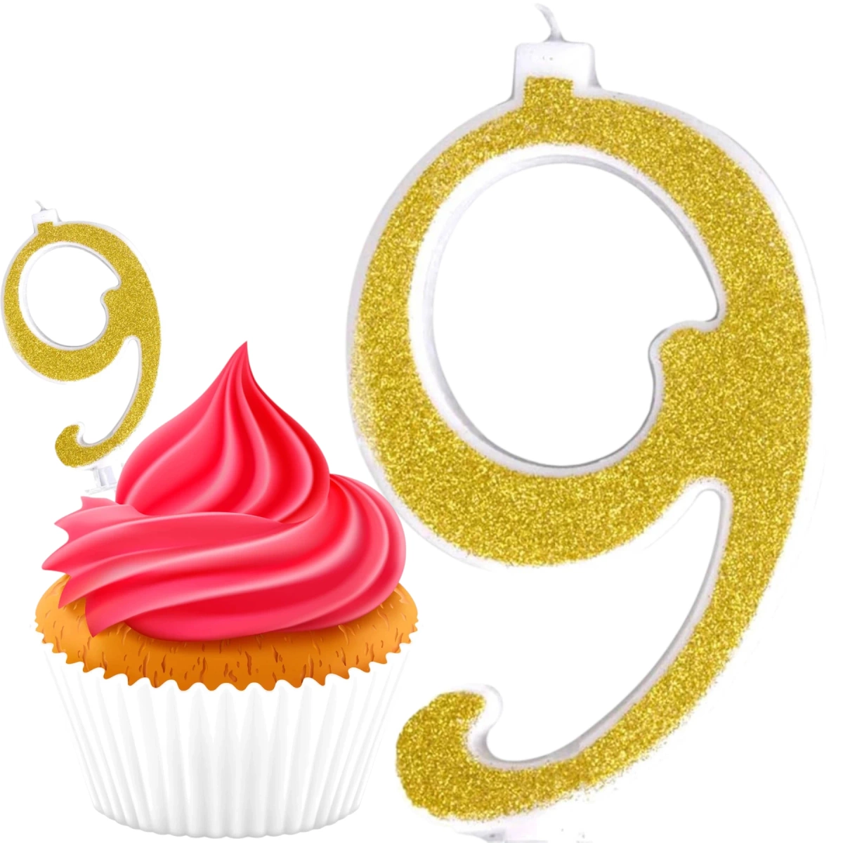 ŚWIECZKA URODZINOWA NA TORT CYFRA 9 ZŁOTA Z BROKATEM NA 9 URODZINY