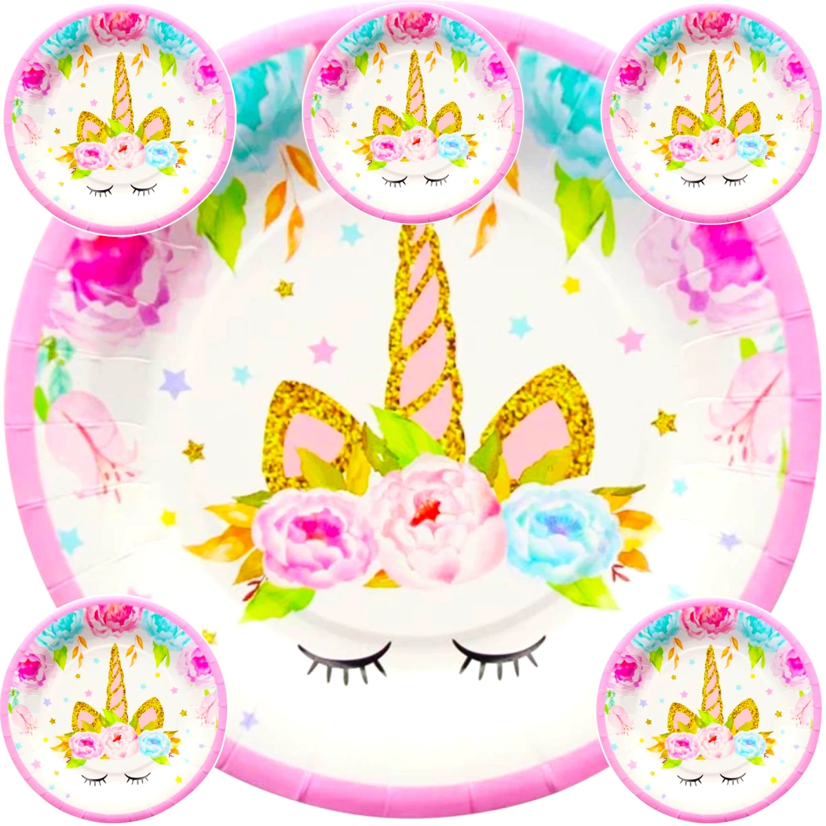 TALERZYKI NA URODZINY 18cm JEDNOROŻCE UNICORN PAPIEROWE 6szt EKO