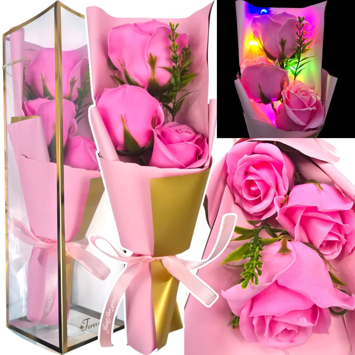 WIECZNA RÓŻA LED - BUKIET W PUDEŁKU ZESTAW PREZENTOWY NA DZIEŃ KOBIET