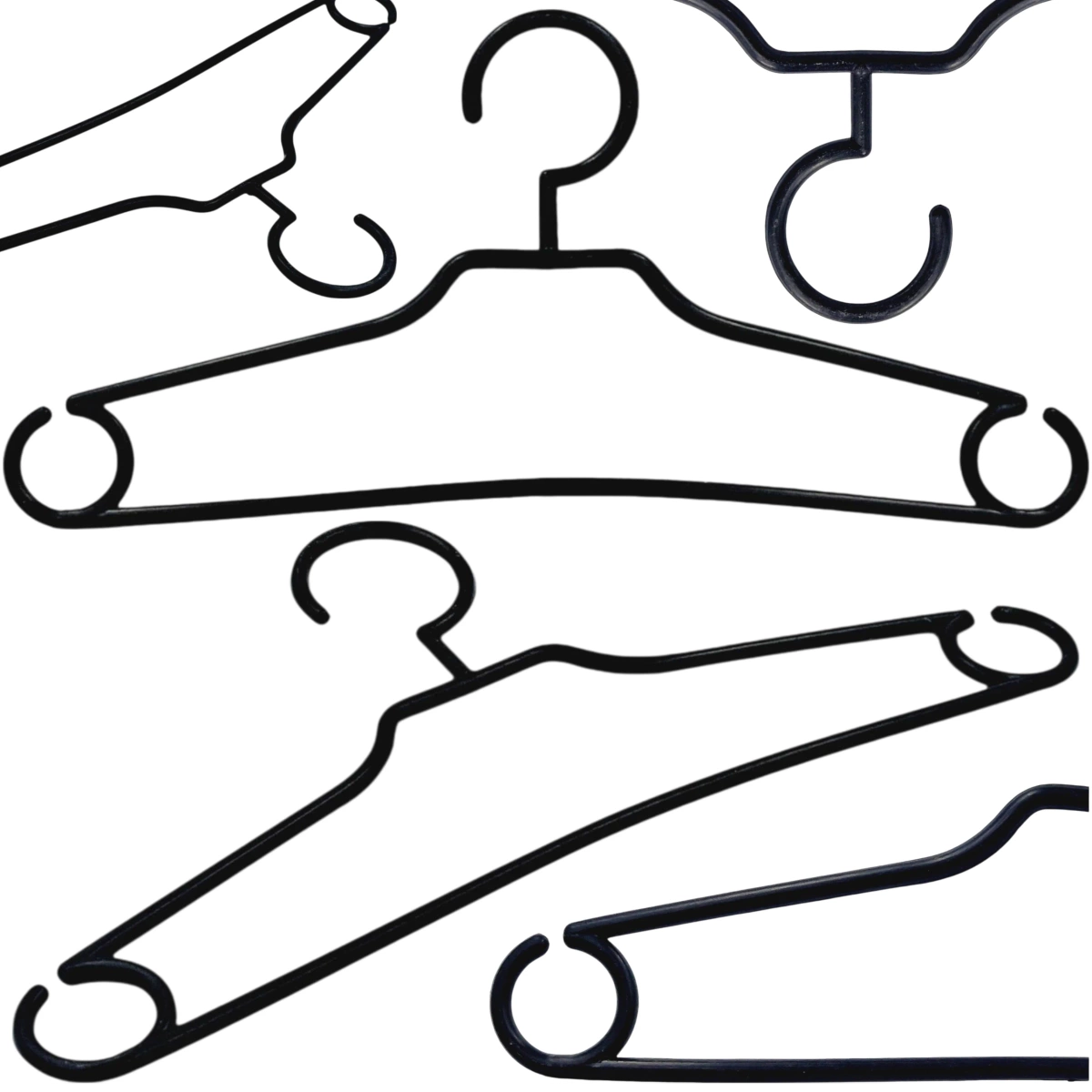 ▶ Wieszaki są bardzo wytrzymałe. Zostały wykonane z polipropylenu (nie pękają, lecz uginają się pod większym ciężarem). Konstrukcja została wzmocniona, został dodany szeroki element z tworzywa w górnej części wieszaka - jest to też doskonałe miejsca na dodanie etykiety. Wieszak został także wyposażony w haczyki, które sprawiają że jest bardzo uniwersalny.