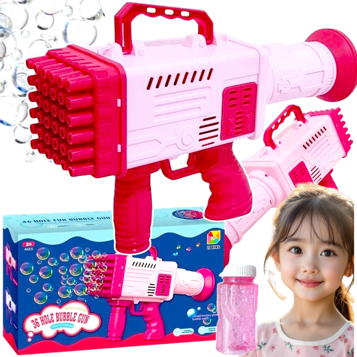 WYRZUTNIA DO BANIEK MYDLANYCH BAŃKI MYDLANE PISTOLET MEGA BAZOOKA + PŁYN