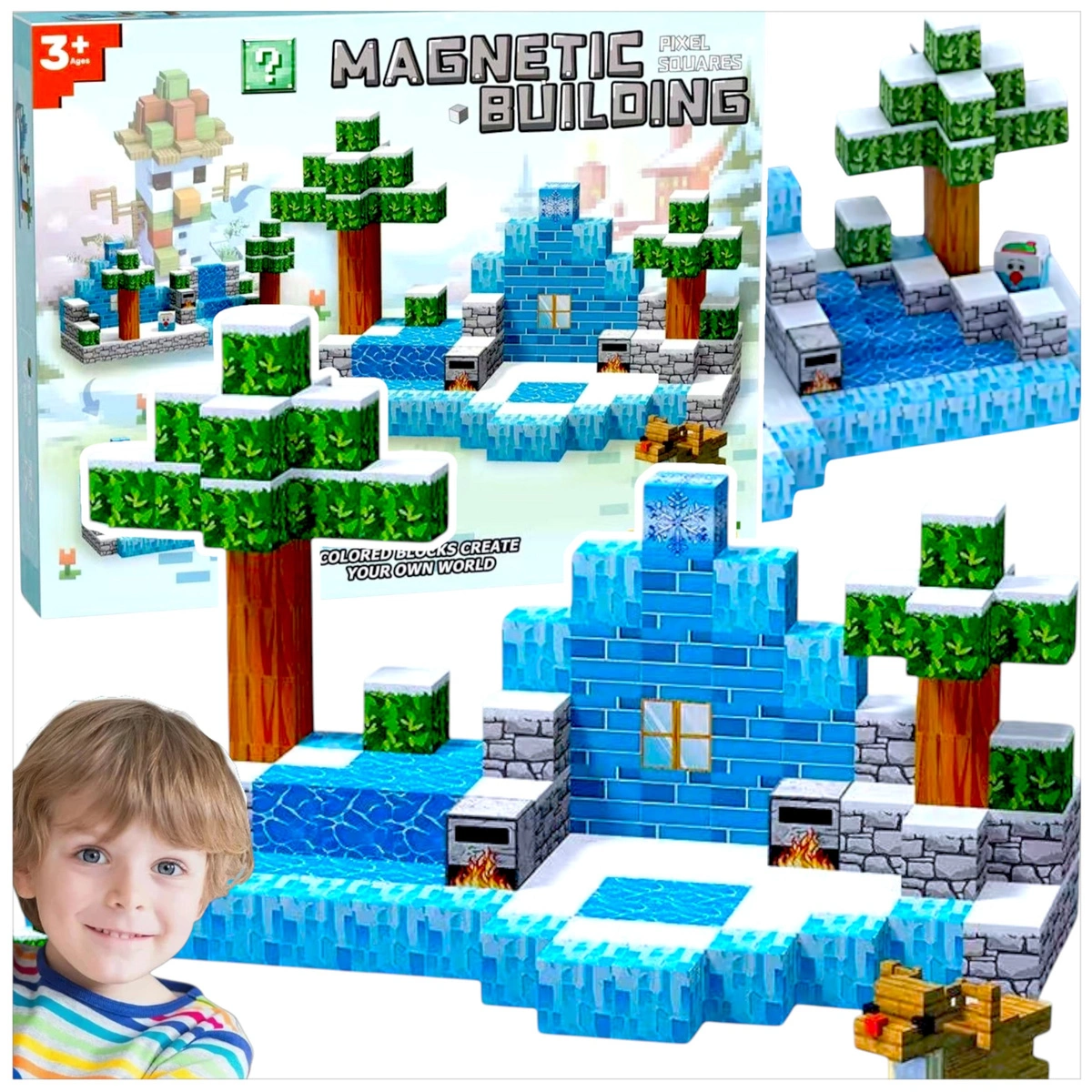 KLOCKI MAGNETYCZNE SZEŚCIANY PIXELE 148 ELEMENTÓW ZIMOWA KRAINA MARZEŃ XXL