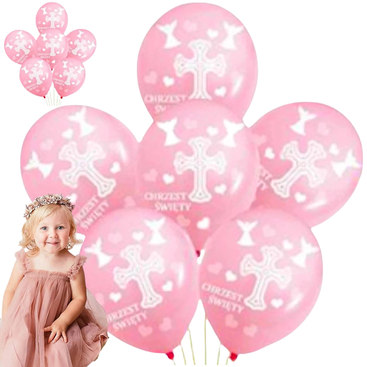 ZESTAW BALONÓW NA CHRZCINY BALONY NA CHRZEST ŚWIĘTY DLA DZIEWCZYNKI RÓŻOWE