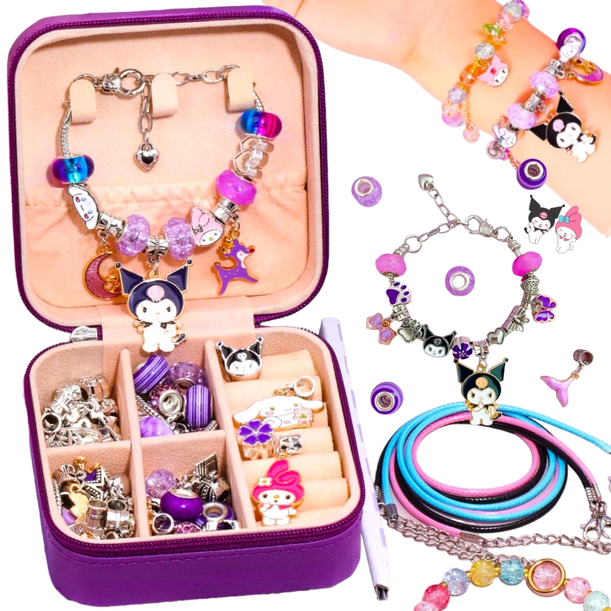 ZESTAW DO ROBIENIA BRANSOLETEK BIŻUTERII DLA DZIECI KUROMI FIOLET KUFEREK