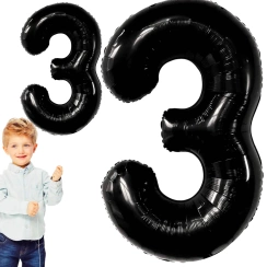 BALON NA 4 URODZINY FOLIOWY CYFRA 3 TRZY CZARNY NA HEL POWIETRZE 100CM