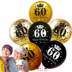ZESTAW BALONÓW NA 60 URODZINY CZARNO ZŁOTE KONFETTI BALONY ZESTAW 6szt